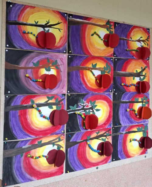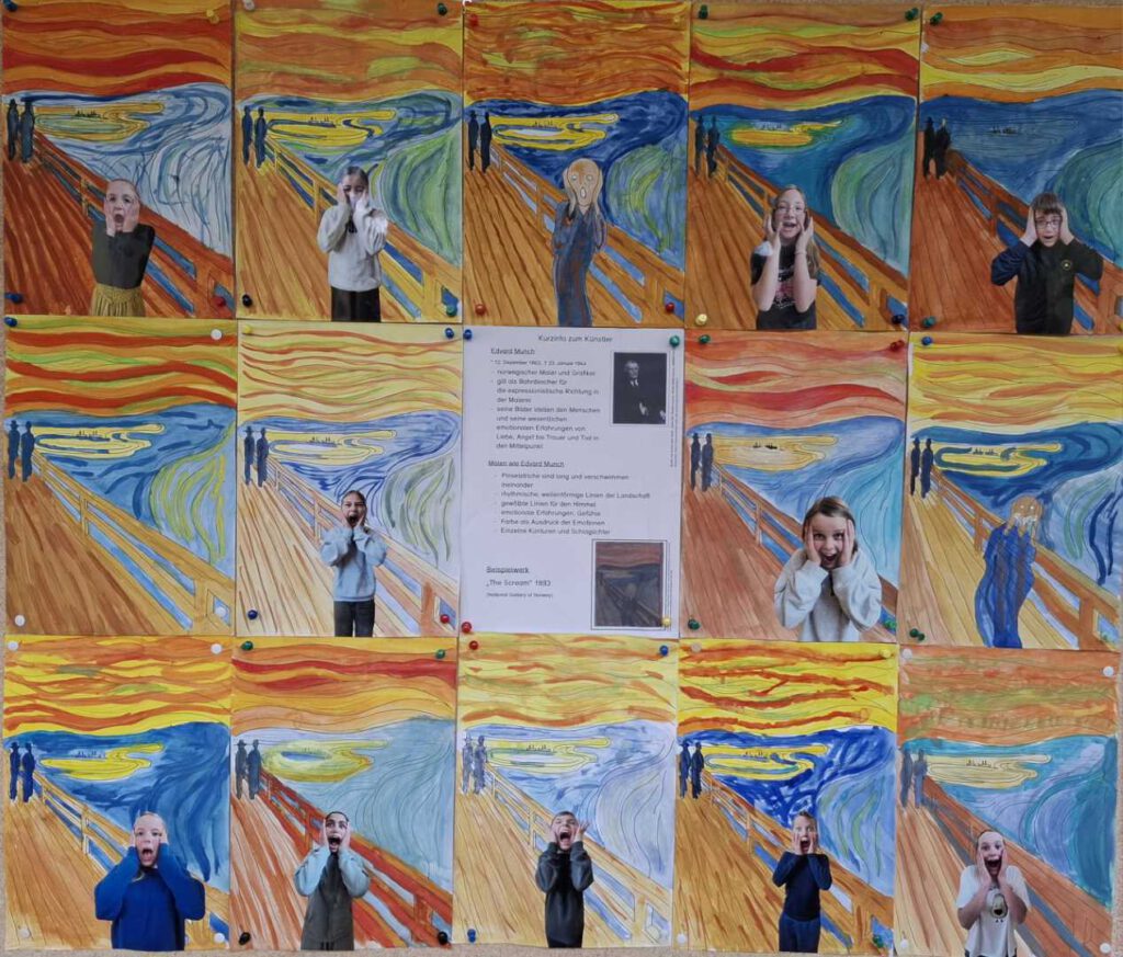 10.12.2025Die Kunstwerke unserer Schülerinnen und Schüler schmücken unseren Schulflur und laden dazu ein, innezuhalten und die bunten Werke zu bewundern.