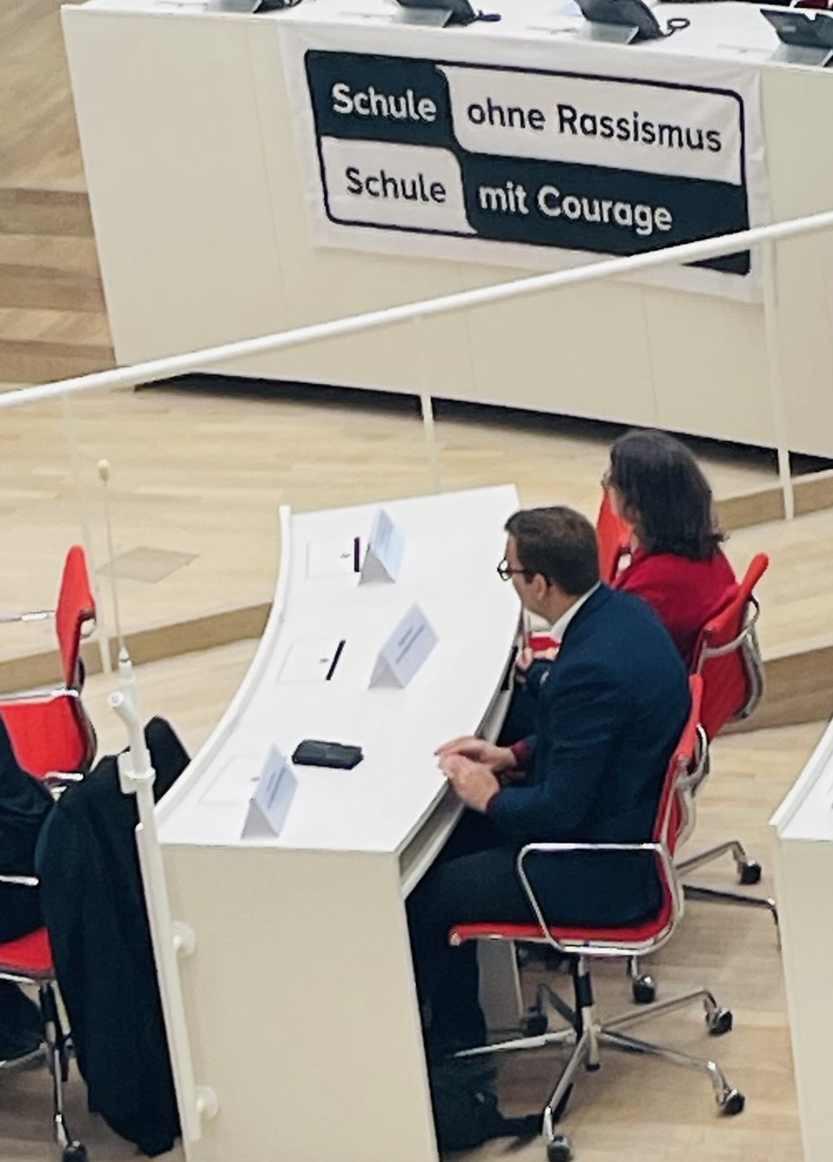 Bei der Begrüßung lobte die Präsidentin die Courage der Schulen: „Sie sind heute hier, weil Ihre Schulen sich entschieden haben mitzuziehen. Nicht ein paar Engagierte, sondern alle – denn nur dann entstehen Projekte, die tragen: Projekttage, Ausstellungen, Diskussionen, Gedenkformate, Konzerte, Kunstaktionen und Begegnungen mit Politik. Fast täglich passiert irgendwo in diesem Netzwerk etwas. Das macht Mut.“