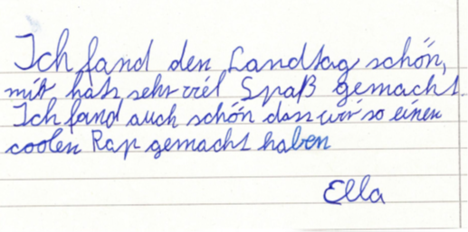 Ella hat ihren Eindruck vom Tag wie folgt in Worte gefasst.